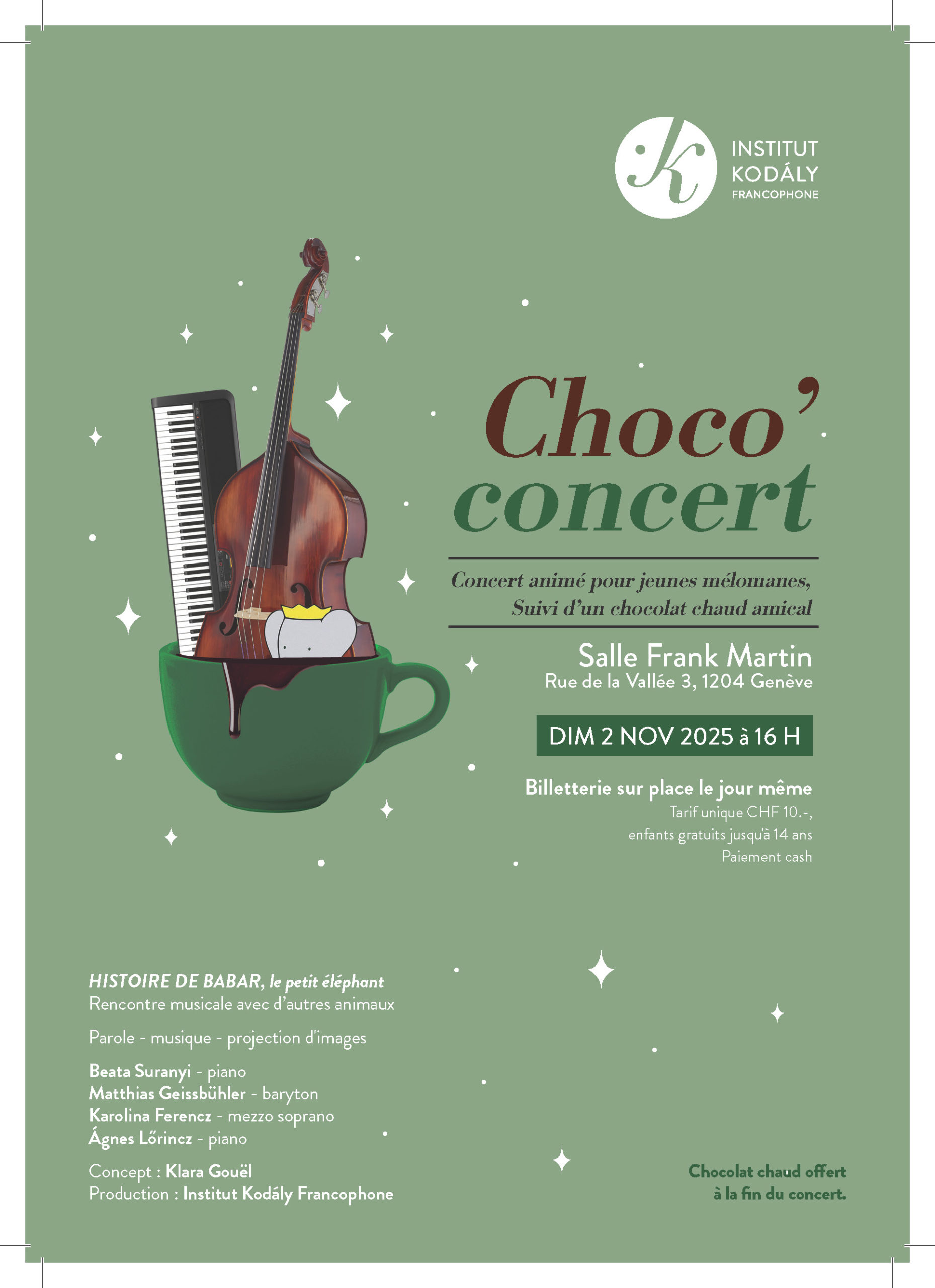 Pour les horaires ou d’autres questions concernant votre inscription, vous pouvez nous contacter à ces deux numéros de téléphone 076 347 22 82 ou 076 360 70 69 et par voie électronique : institut@kodaly-francophone.org