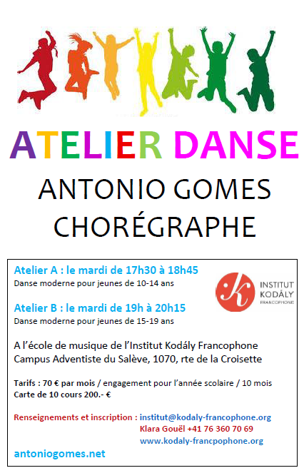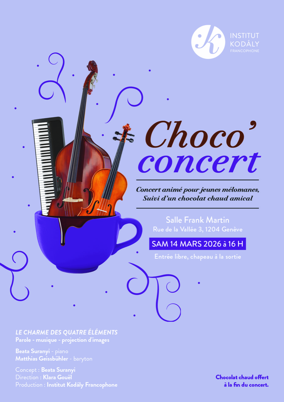 Pour les horaires ou d’autres questions concernant votre inscription, vous pouvez nous contacter à ces deux numéros de téléphone 076 347 22 82 ou 076 360 70 69 et par voie électronique : institut@kodaly-francophone.org