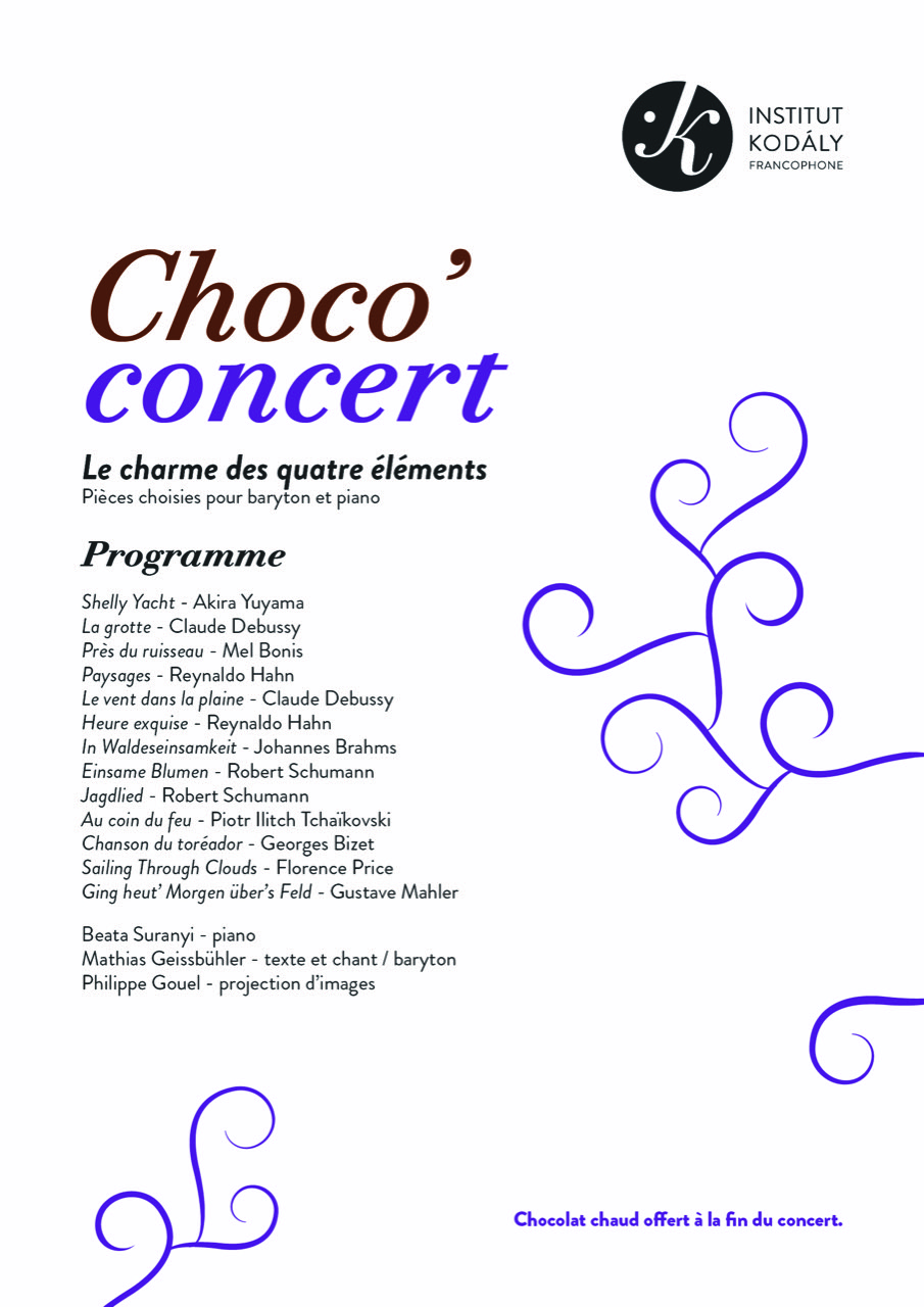 Nous avons le plaisir de vous inviter à notre prochain Choco’concert.